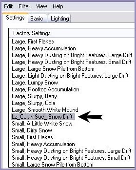31 - Effets/ Filtre Alien Skin 5 /Nature/Snow Drift /Appliquer le preset Lz_Cajun Sue_Snow Drift