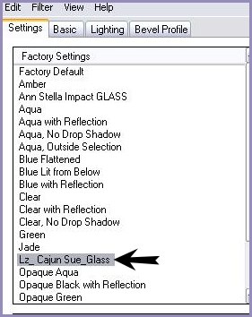 39 - Effets/Alien Skin Eye Impact 5/Glass: Preset Lz_Cajun Sue_Glass