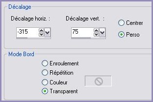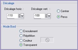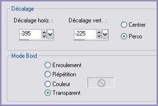 40 - Edition/Copier 41 - Revenir sur l'image mise de côté ( 900 x 650 pixels ) Edition/Coller comme nouveau calque 42 - Effets/Effets d'image/décalage