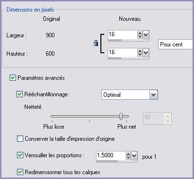 45 - Fenêtre/Dupliquer Travaillez sur la copie Ouvrir le tube Chrismist_sepia_rose.pspimage 46 - Edition/Copier 47 - Revenir sur la copie ( 900 x 650 pixels ) Edition/Coller comme nouveau calque le tube est à sa place 48 - Calques/Fusionner Tout 49 - Image/redimensionner à 16%