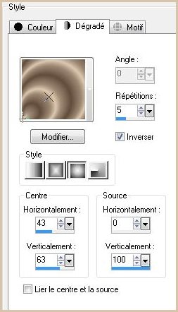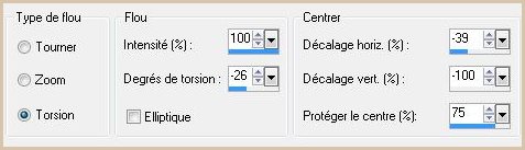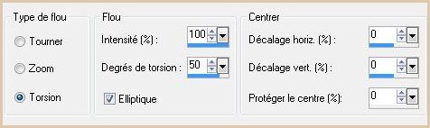 79 - Image/Ajouter des bordures : 1 pixel couleur #614b3b 80 - Modifier/Copier 81 - Sélection/sélectionner tout 82 - Image/Ajouter des bordures : 40 pixels 83 - Sélection/Inverser 84 - Modifier/Coller dans la sélection 85 - Réglages/Flou/Flou radial avec ces réglages:
