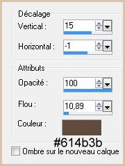 38 - Sélection/Charger/Enregistrer une sélection/charger à partir du disque/Charger la sélection Lz_Rhianwyn_04 39 - Remplir de couleur #614b3b 40 - Calques/NOUVEAU CALQUE 41 - Sélection/Charger/Enregistrer une sélection/charger à partir du disque/Charger la sélection Lz_Rhianwyn_05 remplir de couleur #614b3bd clic deux fois 42 - Sélections/Ne pas sélectionner 43 - Effets/Alien Skin Eye Impact 5/Perspective Shadow : Preset Lz_Rhianwyn_01