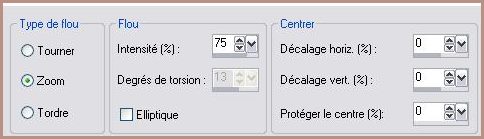 5 - Remplir avec le gradient 6 - Réglages/Flou/Fou radial avec ces réglages :