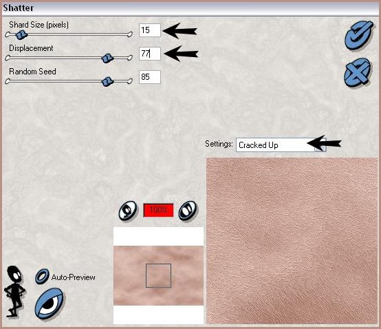 10 - Effets/Effets de bords/Accentuer 11 - Effets/Filtre Xenoflex1.0/Shatter avec ces réglages