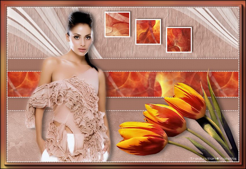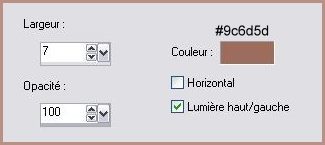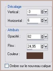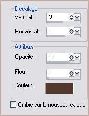 76 - Placer dans le coin inférieur droit 77 - Effets/Effets 3D/Ombre Portée réglages n°71 78 - Calques/Fusionner Tout 79 - Sélection/Sélectionner Tout 80 - Image/Ajouter des bordures : 3 pixels couleur #9c6d5d 81 - Sélection/Inverser 82 - Effets/Effets de Textures/Stores