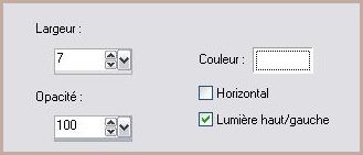 Activer votre image de 900 x 600 pixels 35 - Calques/NOUVEAU CALQUE 36 - Sélection/Charger/Enregistrer une sélection/charger à partir du disque/Charger la sélection Lz_Marly 04 37 - Remplir la sélection de motif Garder sélectionné 38 - Effets/Effets 3D/Ombre Portée réglages du n°24 39 - Calques/NOUVEAU CALQUE 40 - Sélection/Modifier/Sélectionner les bords de la sélection 41 - Mettre la couleur blanche en arrière-plan ( conserver le motif ) 42 - Remplir de couleur blanche 43 - Sélections/Désélectionner44 - Effets/Effets de Textures/Stores réglages du n°29 45 - Calques/NOUVEAU CALQUE 46 - Activer l'outil Pinceau et rechercher le pinceau Lz Marlies01 configuré ainsi: