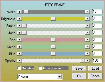 83 - Effets/Effets de Textures/Stores horizontal coché uniquement 84 - Effets/Effets de bords/Accentuer 85 - Sélection/Sélectionner Tout 86 - Image/Ajouter des bordures : 25 pixels couleur #9c6d5d 87 - Sélection/Inverser Placer votre motif en arrière-plan ( voir n°34 ) 88 - remplir votre sélection de motif 89 - Réglages/Flou/Flou gaussien : rayon : 35 90 - Effets/Filtre AAA Frame/Foto Frame :