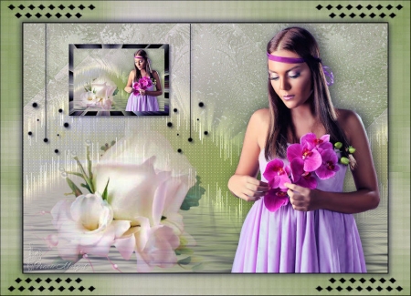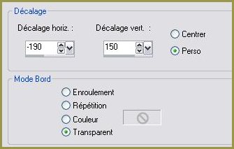 52 - Ouvrir le tube "June Series Flora 3 .pspimage "53 - Edition/Copier 54 - Revenir sur votre travail 55 - Edition/Coller comme nouveau calque 56 - Effets/Effets d'image/décalage :