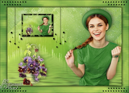 28 - Réglages/Netteté/Davantage de netteté 29 - Calques/Fusionner les calques visibles 30 - Sur ce même calque Sélection/Charger/Enregistrer une sélection/charger à partir du disque/Charger la sélection Lz Carina 2 31 - Sélection/Transformer la sélection en calque 32 - Dans la Palette de Style placer ces couleurs : avant-plan couleur #686a43 / arrière-plan couleur #ffffff