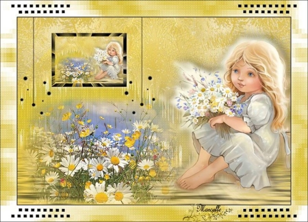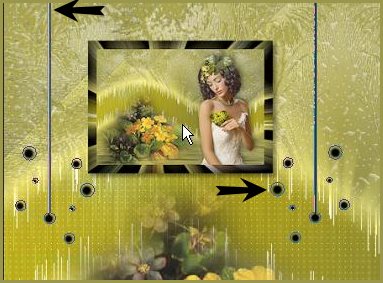 72 - Répéter l'ombre portée précédente 73 - Image/Ajouter des bordures : 2 pixels couleur #000000 74 - Edition/Copier 75 - Ouvrir une image de 900 x 650 pixels 76 - Placer en avant-plan la couleur #d4c754 77 - En arrière-plan la couleur #686a43 78 - Configurer en avant-plan un dégradé halo /Répétition: 0