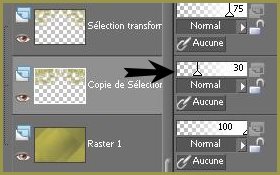 20 - Calques/Dupliquer 21 - Image/Miroir 22 - Calques/Fusionner le calque du dessous 23 - Dans la Palette des calques baisser l'opacité à 75% 24 - Calques/Dupliquer 25 - Effets/Effets de distorsion/Cintrage: 100 26 - Calques/Agencer/Déplacer vers le bas 27 - Dans la Palette des calques baisser l'opacité à 30%