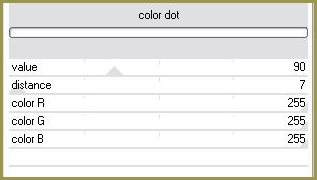 82 - Effets/Effets de bords/Accentuer 83 - Effets/pentacom/Color Dot avec les réglages n°37 84 - Édition/Coller comme nouveau calque ( votre image en toujours en mémoire ) 85 - Effets/Effets 3D/Ombre Portée :
