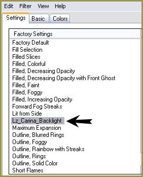 38 - Calques/Dupliquer 39 - Effets/Alien Skin Eye Impact 5/Blacklight Onglet settings: rechercher le preset Lz Carina Blacklight / OK