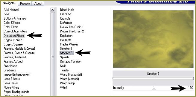 79 - Remplir votre image 80 - Effets/Unlimited/Distortion Filters/Smelter 2 :