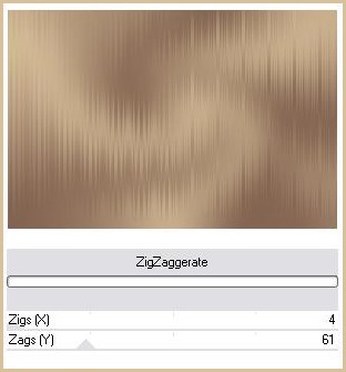 83 - Image/Ajouter des bordures/ symétriques décoché : droite et gauche : 0/ haut et bas: 3 pixels couleur #7d5e4d 84 - Image/Ajouter des bordures/ symétriques décoché : droite et gauche : 0/ haut et bas: 1 pixel couleur #d8c09a 85 - Image/Ajouter des bordures/ symétriques décoché : droite et gauche : 0/ haut et bas: 30 pixels couleur #7d5e4d 86 - Avec la baguette magique sélectionner les bordures du haut et du bas 87 - Image/Tourner à droite 88 - Effet/L&K/Zitah avec les réglages précédents 89 - Image/Rotation à gauche90 - Effets/Effets 3D/Découpe: