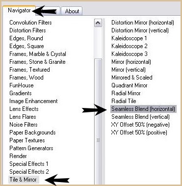 10 - Effets/Unlimited/ICNET-Filters/Onglet Navigator/Tile &Mirror/Seaùmess Blend( Horizontal)