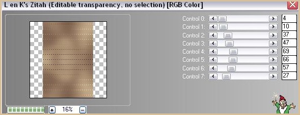 11 - Calques/Dupliquer 12 - Image/Tourner à droite 13 - Effet/L&K/Zitah avec les réglages suivants :