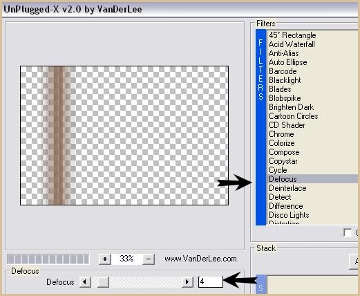 22 - Effets/VanDerLee/ Unplugged/ Defocus avec les réglages suivants :