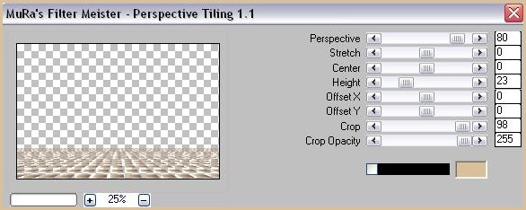 37 - remplir la sélection de dégradé 38 - Sélection/Désélectionner 39 - Effets/Effets de bords/Accentuer Davantage 40 - Effets/Mura's Meister/Perspective Tiling avec les réglages suivants :