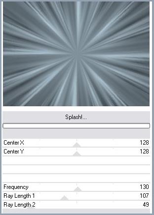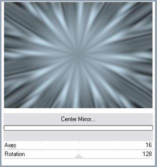 1 - Ouvrir une image de 900 x 650 pixels 2 - Placer en avant-plan la couleur #66737b 3 - En arrière-plan la couleur # f5f5f5 4 - Remplir votre image avec la couleur foncée 5 - Effets/Filtre Greg's Factory Output. Vol 11 6 - Effets/Filtre VM Distortion/Mirror center :