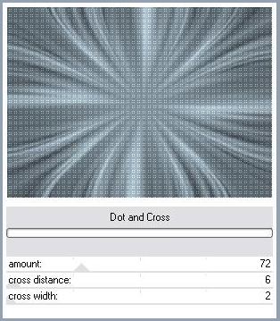8 - Effets/Effets de Distorsion/Cintrage : 100 9 - Effets/Effets de Distorsion/Bombage : 100 10 - Effets/Filtre Pentacom/Dot and Cross