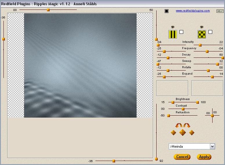 18 - Sélections/Désélectionner 19 - Effets/Filtre Redfield/ Ripples Magic :