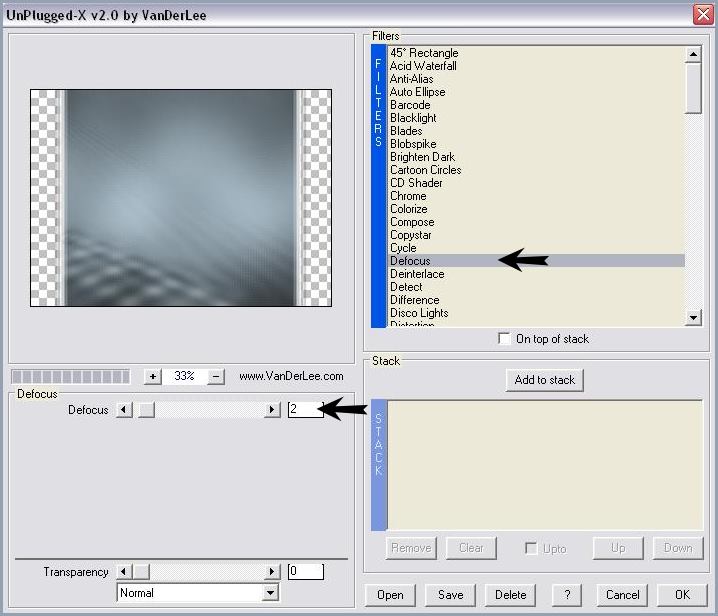 46 - Effets/ Filtre VanDerLee/ Unplugged-X : Defocus sur 247 - Effets/Effets de distorsion/Vagues :