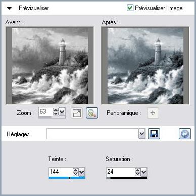 sélectionner le centre du cadre Ouvrir l'image Lz_Merinda_Plaatje 33 - Réglages/Teinte et Saturation/Coloriser