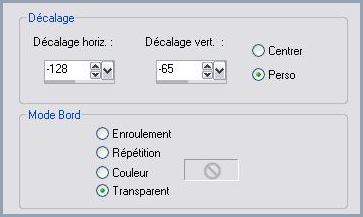 61 - Calques/Dupliquer 62 - Image/Miroir 63 - Image/Renverser 64 - Ouvrir le tube "MD_96_SL.psp.pspimage " 65 - Edition/Copier 66 - Revenir sur votre travail Edition/Coller comme nouveau calque 67 - Effets/Effets d'image/décalage
