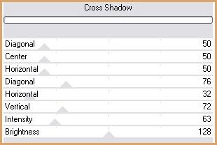 26 - Calques/NOUVEAU CALQUE 27 - Remplir de couleur #d58d40 28 - Effets/Filtre Graphic Plus/Cross Shadow avec ces réglages :