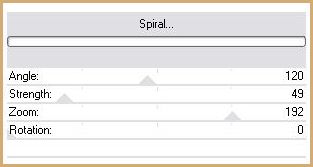 5 - Remplir avec le gradient 6 - Réglages/Flou/Flou gaussien : rayon : 25 7 - Effets/Unplugged Tools/Spiral : avec ces réglages
