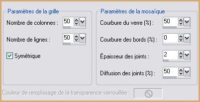 13 - Remplir votre calque de ce dégradé 14 - Sélection/Sélectionner ToutActiver le tube Lady187_Dédé.pspimage 15 - Edition/Copier 16 - Revenir sur votre image 300 x 350 pixels/Edition/Coller dans la sélection 17 - Sélection/Désélectionner 18 - Réglages/Flou/Flou gaussien : rayon : 15 19 - Effets/Effets de textures/Mosaïque de verre: