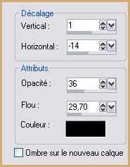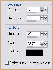 20 - Édition/Coller comme nouveau calque (le tube est encore dans le presse-papier) 21 - Image/Redimensionner à 90%/décocher " tous les calques" 22 - Déplacer vers le bas 23 - Effets/Effets 3D/Ombre Portée :