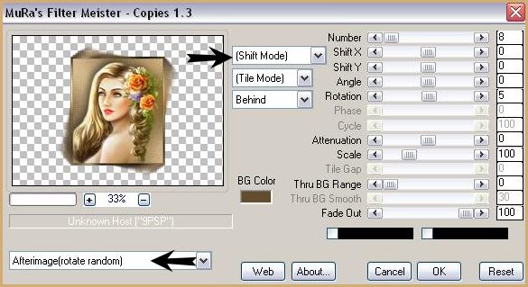 24 - Calques/Fusionner Tout 25 - Image/Ajouter des bordures : 1 pixel couleur #644c2e 26 - Sélection/Sélectionner Tout 27 - Image/Ajouter des bordures : 5 pixels couleur #644c2e 28 - Sélection/Inverser 29 - Remplir de dégradé du n°12 30 - Effets/Filtre Graphic Plus/Cross shadow réglages par défaut 31 - Sélections/Désélectionner 32 - Image/Ajouter des bordures : 1 pixel couleur #644c2e 33 - Edition/Copier34 - Revenir sur image 700 x 500 pixels Edition/Coller comme nouveau calque 35 - Effets/Filtre Mura's Meister avec ces réglages