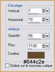68 - Sélection/Sélectionner Tout 69 - Sélection/modifier/Contracter de 15 pixels 70 - Calques/Nouveau calque 71 - Remplir de couleur #644c2e 72 - Effets/Graphic Plus/Cross Shadow réglages par défaut 73 - Effets/Bordermania/Frame #2