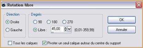 Activer le tube Lace 53 - Edition/Copier54 - Revenir sur image 700 x 500 pixels Edition/Coller comme nouveau calque 55 - Image/Rotation libre de 45° à droite