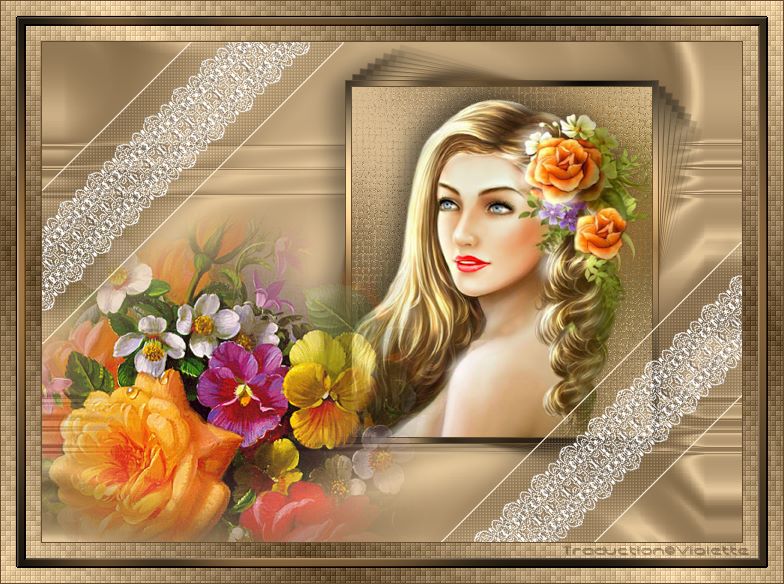 74 - Sélection/modifier/Contracter de 10 pixels 75 - Appuyer sur la touche "Suppr" 76 - Sélection/Désélectionner 77 - Calques/Fusionner Tout 78 - Image/Ajouter des bordures : 1 pixel couleur #644c2e Placer votre watermark( signature ) Exporter en JPEG Optimisé *** Une autre version