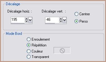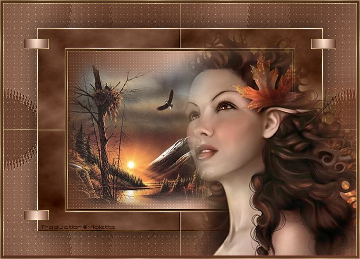 62 - Placer un motif or en avant-plan / Remplir votre sélection 63 - Sélections/Désélectionner 64 - Effets/Filtre Simple/Top Left Mirror 65 - Ouvrir le tube "Autumn Whispers.pspimage " Edition/Copier 66 - Revenir sur votre travail Edition/Coller comme nouveau calque 67 - Effets/Effets d'image/décalage