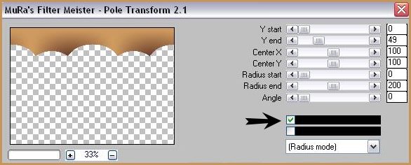 16 - Calques/NOUVEAU CALQUE le dégradé doit toujours être en premier plan 17 - Remplir le calque de dégradé 18 - Réglages/Flou/Flou gaussien : rayon : 35 19 - Effets/Filtre Mura's Meister/ Pole transformation :