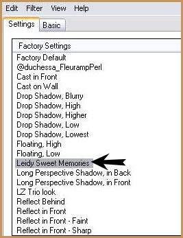 21 - Effets/Effets de bords/Accentuer 22 - Effets/Alien Skin Eye Impact 5/Shadow : Preset Leidy Sweet memories