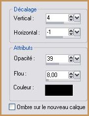 41 - Calques/NOUVEAU CALQUE 42 - Sélection/Charger/Enregistrer une sélection/charger à partir du disque/Charger la sélection Leidy Sweet Memories 3 Placer la couleur #693c2b en avant-plan 43 - Remplir de couleur avant-plan 44 - Sélections/Désélectionner 45 - Effets/Effets 3D/Ombre Portée :