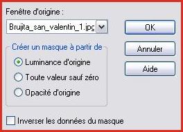 9 - Activer le masque Brujita_san_valentin_1.pspimage Calques/Nouveau calque de masque/à partir d'une image/Ajout d'un masque à partir d'une image sélectionner le masque Brujita_san_valentin_1.jpg