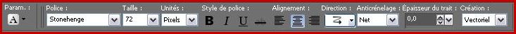 16 - Activer l'outil Texte/Police Stonehenge/taille : 72 avant-plan fermé /couleur arrière-plan #ab2b20