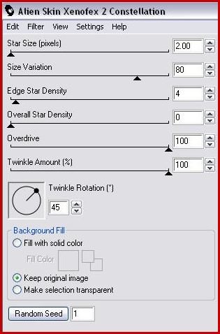 24 - Activer le calque coin 1 Effets/Alien Skin Xenofex2/ Constellation avec ces réglages: