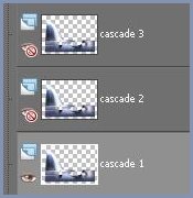 22 - Dupliquer cette sélection deux fois Renommer vos calques : cascade 1, cascade 2 et cascade 3