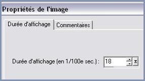 31 - Edition/sélectionner Tout Animation/Propriétés de l'image/Durée de l'affichage : 18