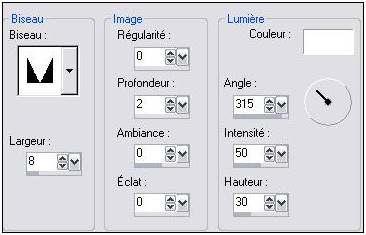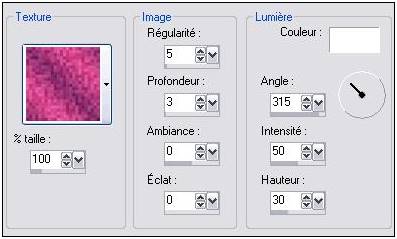 12 - Activer le calque supérieur 13 - Calques/Nouveau calque Sélection/modifier/Contracter de 15 pixels Sélection/Inverser Remplir du dégradé employé au N° 6 Effets/Effets de Textures/Texture identique à celle employée au N° 1 Sélection/Désélectionner Effets/Effets de bords/Accentuer Davantage Faire une Ombre Portée à votre goût