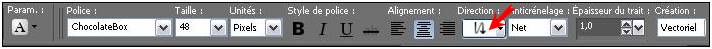 14 - Activer l'outil Texte/Police ChocolateBox/taille : 48 avant-plan fermé /couleur arrière-plan #ffffff