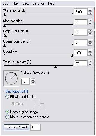18 - Activer le calque S3 Effets/Alien Skin Xenoflex/Constellation : clic sur "Random Seed"