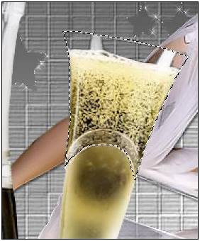 10 - Activer le tube calguiscoupchamp7129.pspEdition/Copier/Edition/Coller comme nouveau calque Image/Redimensionner à 67%/décocher " tous les calques" Placer sur le coin gauche 11 - A l'aide de l'outil lasso faire une sélection comme ceci:
